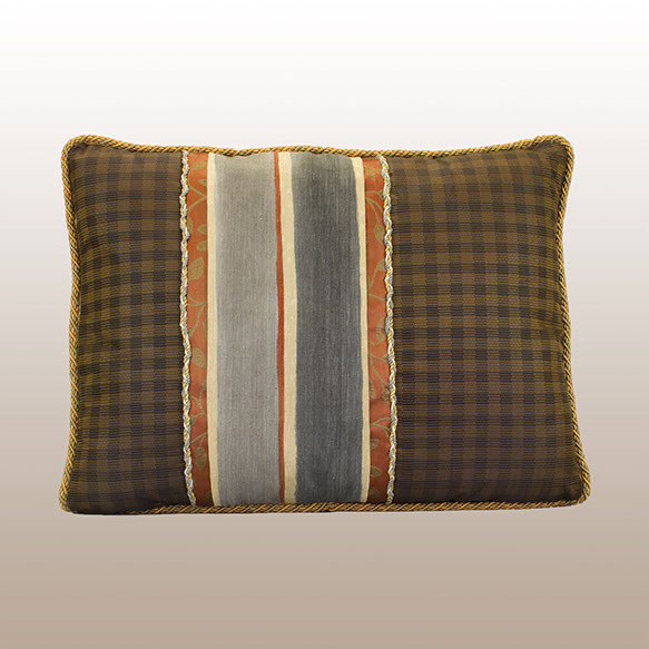 A rectangular shaped pillow such as Charlie’s Stripe would be a great addition to a sofa, day bed or bedroom area flanked by smaller pillows on either side or in front for a layered look. Although the stripes are more contemporary don’t be afraid to add this pillow to an eclectic space. Rooms with many different styles create lots of interesting focal points. Good color intensities would be soft with grayed hues. Think soft turquoise, celadon greens, ivories, soft golds, plums, grays and many more options. Go ahead, be creative. Let your imagination run wild. Remember love is in the details.
