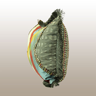 A Kaleidoscope was a toy many of us grew up with. It was a long tube with the bottom part filled with brightly colored items and so when it was turned a new design was created. The rich and beautiful range of primary colored fabrics from Beacon Hill creates a unique Kaleidoscope design for each pillow. Beacon Hill’s hand applied primary colored upcycled fabrics are edged with the woven gray/charcoal/primary color tones blending it all together. Both sides of each pillow are lined with muslin and a pale blue chambray under the gray sheer to keep the colors true. Kaleidoscope’s second side uses three of the Beacon Hill fabric colors on each side along with trims in a simple vertical pattern. Edge trims in the Beacon Hill fabric colors, as well as pewter toned metal pieces, create a finished edge. Each pillow from Pillow Galleria is a one of a kind piece of art for your home. Pillow Galleria…. Atelier for the Home.