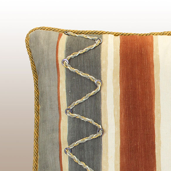 A rectangular shaped pillow such as Charlie’s Stripe would be a great addition to a sofa, day bed or bedroom area flanked by smaller pillows on either side or in front for a layered look. Although the stripes are more contemporary don’t be afraid to add this pillow to an eclectic space. Rooms with many different styles create lots of interesting focal points. Good color intensities would be soft with grayed hues. Think soft turquoise, celadon greens, ivories, soft golds, plums, grays and many more options. Go ahead, be creative. Let your imagination run wild. Remember love is in the details.
